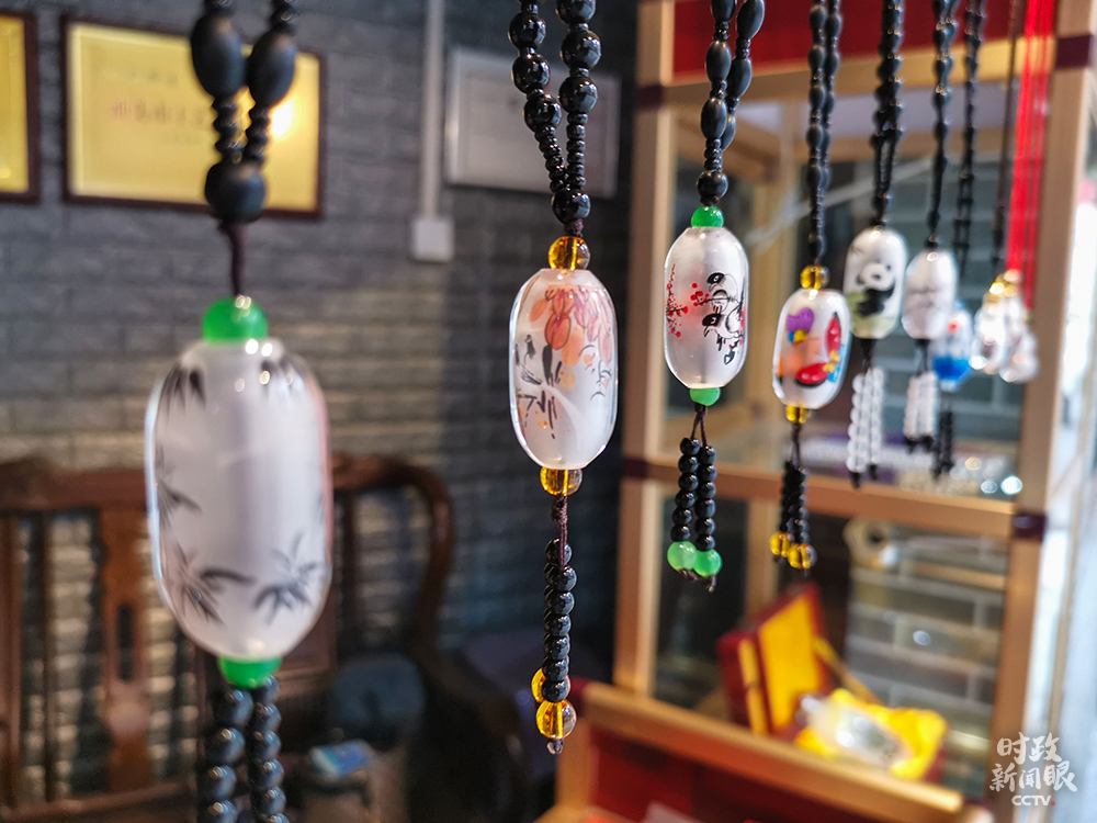 △汕頭瓶內(nèi)畫(粵派)創(chuàng)作以色彩艷麗和裝飾風格著稱。(總臺央視記者李曉周拍攝)