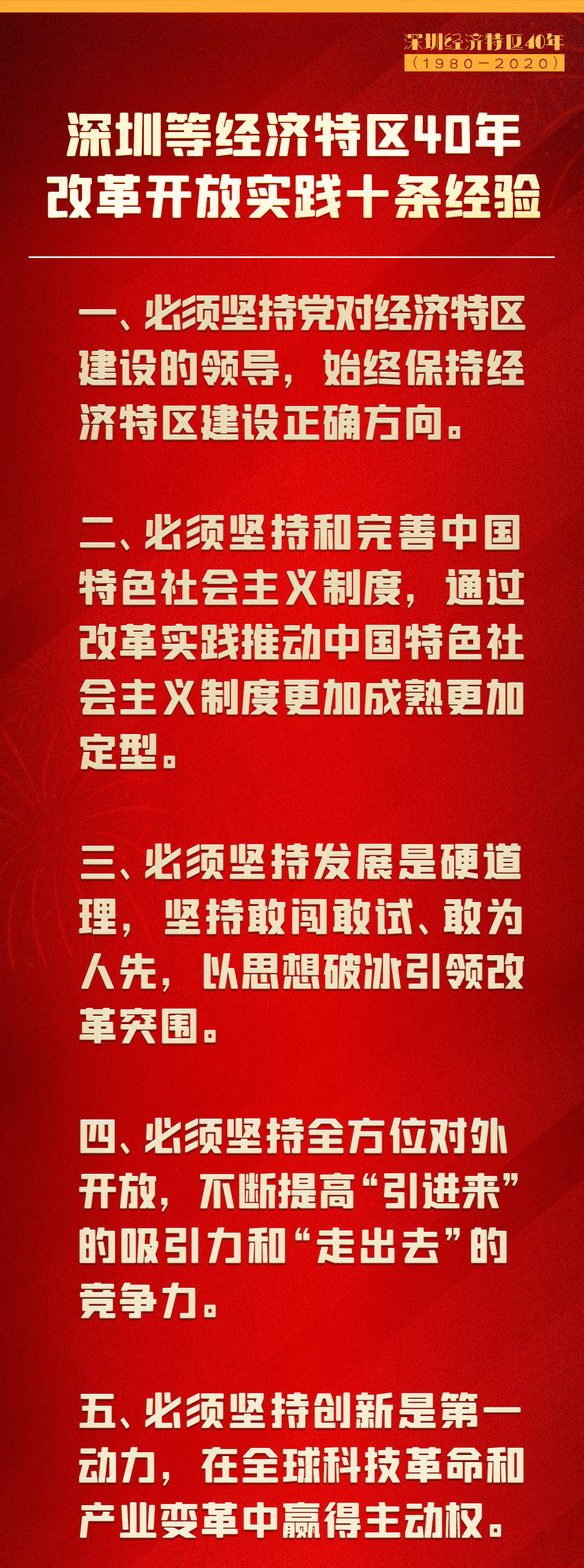 深圳等經(jīng)濟(jì)特區(qū)40年改革開(kāi)放實(shí)踐,創(chuàng)造了偉大奇跡,積累了寶貴經(jīng)驗(yàn),深化了我們對(duì)中國(guó)特色社會(huì)主義經(jīng)濟(jì)特區(qū)建設(shè)規(guī)律的認(rèn)識(shí)。