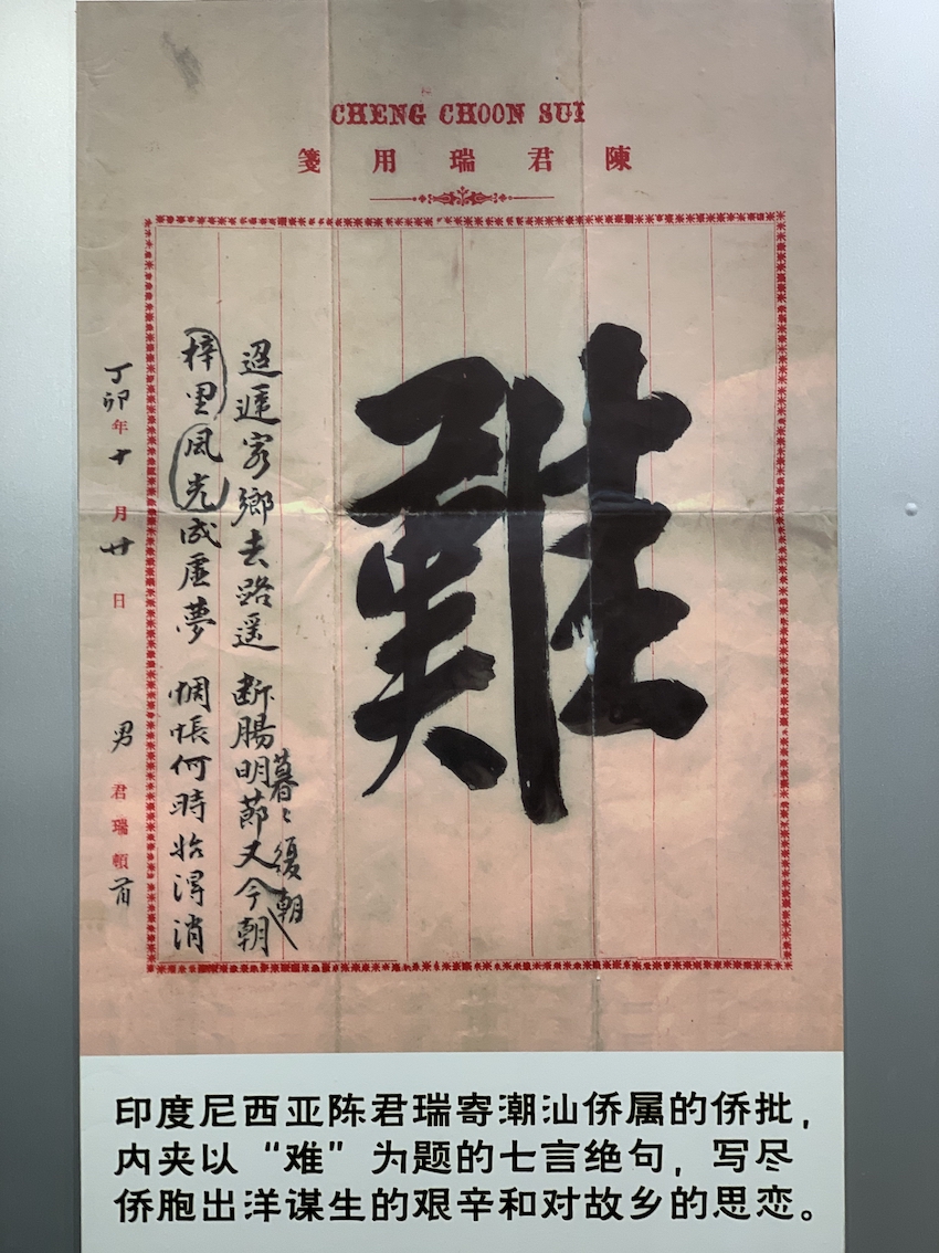△陳列在僑批文物館有“難”字的僑批(總臺央視記者段德文拍攝)