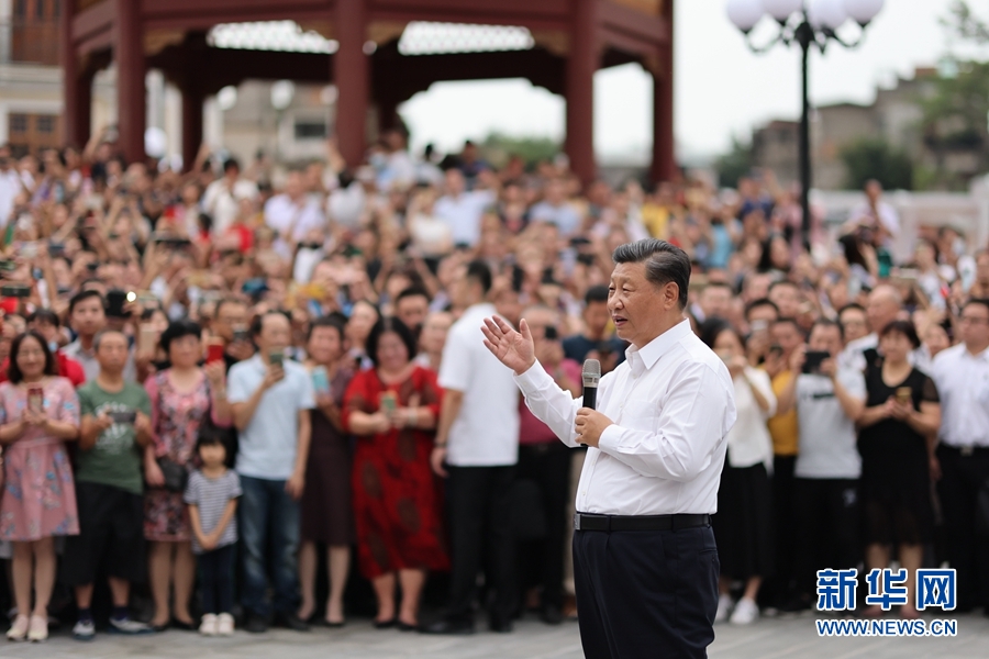 當(dāng)?shù)厝罕姾陀慰蛡円姷娇倳泚砹?,爭相圍攏上來向總書記問好。習(xí)近平祝大家生活愉快、健康幸福。他指出,我國改革開放和經(jīng)濟特區(qū)的建設(shè)同大批心系鄉(xiāng)梓、心系祖國的華僑是分不開的。我們即將全面建成小康社會、開啟全面建設(shè)社會主義現(xiàn)代化國家新征程,向第二個百年奮斗目標(biāo)進(jìn)軍。到本世紀(jì)中葉把我國建成富強民主文明和諧美麗的社會主義現(xiàn)代化強國,是海內(nèi)外全體中華兒女的共同心愿。今年是經(jīng)濟特區(qū)建立40周年,我特地來汕頭經(jīng)濟特區(qū)考察調(diào)研,就是要向國內(nèi)外宣示,中國共產(chǎn)黨領(lǐng)導(dǎo)中國人民將堅定不移走改革開放道路,奮發(fā)有為推進(jìn)社會主義現(xiàn)代化建設(shè),鍥而不舍實現(xiàn)中華民族偉大復(fù)興的中國夢。希望鄉(xiāng)親們攜手努力,共同奮斗!