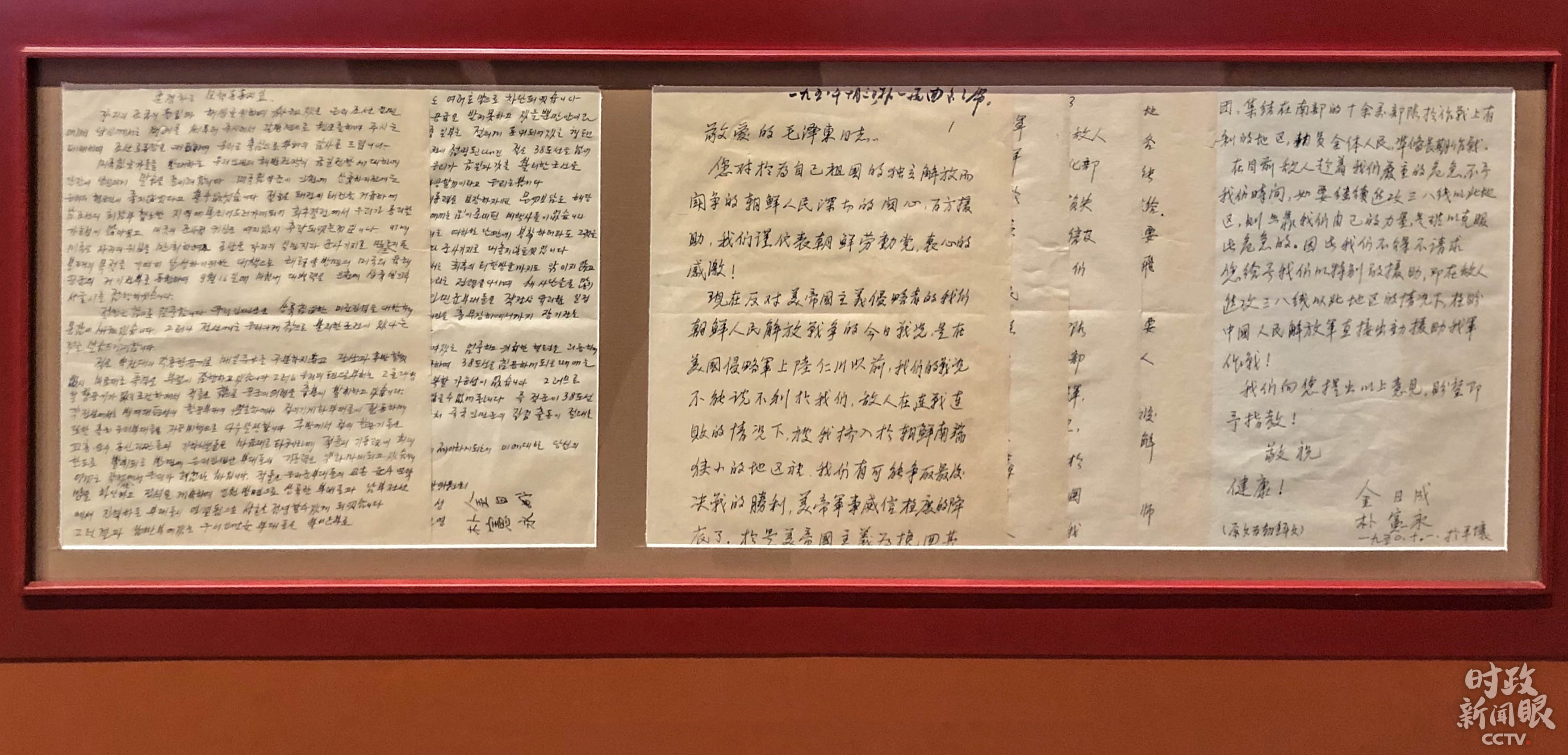 △這是1950年10月1日,金日成請求中國出兵援助朝鮮的信函和譯文。(總臺央視記者許永松拍攝)