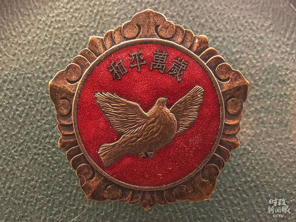 △這是第三屆赴朝慰問團贈給志愿軍的和平萬歲紀念章。(總臺央視記者許永松拍攝)