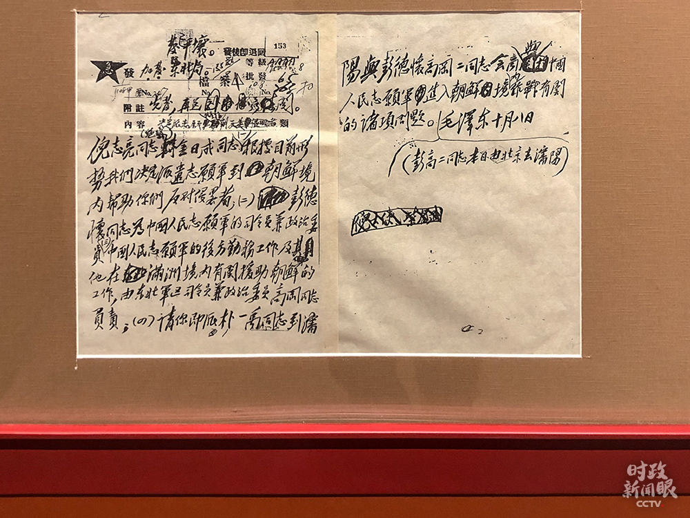 △1950年10月8日,毛主席致電金日成,告知中國政府決定出兵援朝。(總臺央視記者許永松拍攝)