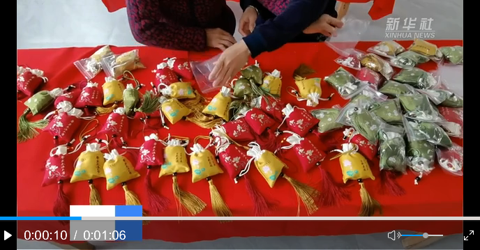 10月19日,在黃茅鎮(zhèn)軍屯村扶貧車(chē)間,村民在制作迷迭香袋。新華網(wǎng)發(fā) 鄧龍華 攝
