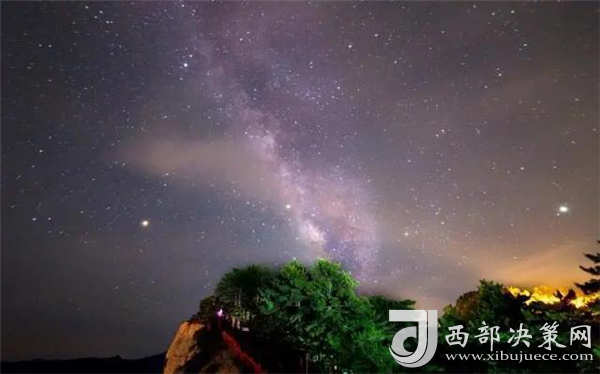 夜色華山,是一幅時(shí)間與空間的交錯(cuò),而其中最吸引人的是華山最美三色的變幻,那就是:賞星空、觀日出、看山色。繁多的星光,滿山的燈光,將華山映襯得一派柔和,這里的夜屏蔽了城市的喧囂與繁華,有著不屬于城市的寧?kù)o與美麗。