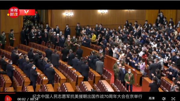 23日,大會(huì)開幕前的一個(gè)“畫面”讓很多人淚目:志愿軍老戰(zhàn)士、老同志入場(chǎng),現(xiàn)場(chǎng)全體起立并鼓掌,在入場(chǎng)的十多分鐘期間,掌聲一直在持續(xù)。