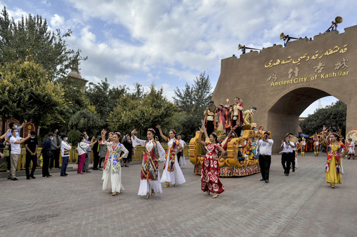 新疆喀什古城景區(qū)舉行開城儀式,歡迎游客入城游覽(9月11日攝)。新華社記者 馬鍇 攝