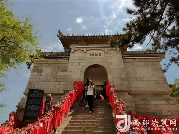 到達金鎖關(guān)時,眼前大片大片的紅色,游人的視覺和心靈都受到強烈的沖擊。這就是沿路兩邊鐵鏈上綁滿的密密麻麻的紅色絲繩,不留一絲空隙,風(fēng)吹來,長長的紅色絲繩就輕盈的舞起來,如愛情牢固的臂膀,甜蜜的飛翔在華山之上。讓一把同心鎖和華山相伴到地老天荒,成為一個“山無陵,天地絕,乃敢與君絕”的千古愛情神話。