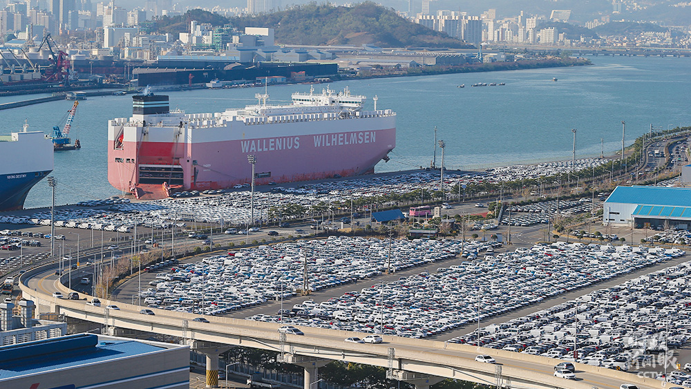 △今年9月,韓國在疫情暴發(fā)后首次實(shí)現(xiàn)出口正增長,同比增加7.6%。這是全球最大的汽車工廠——韓國蔚山汽車廠,擁有出口碼頭。