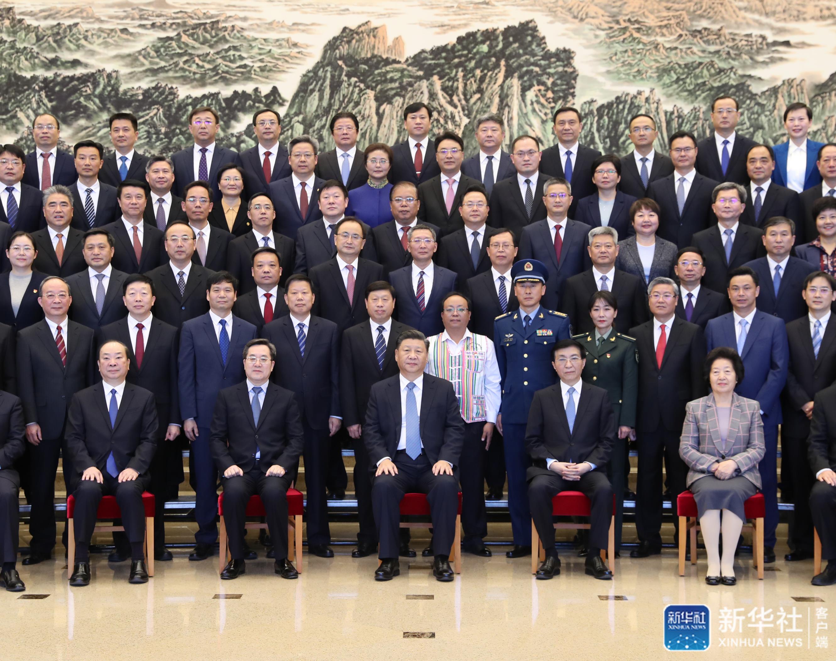上午10時,習(xí)近平等來到京西賓館會議樓前廳,全場響起熱烈掌聲。習(xí)近平等走到代表們中間,同大家親切交流并合影留念。