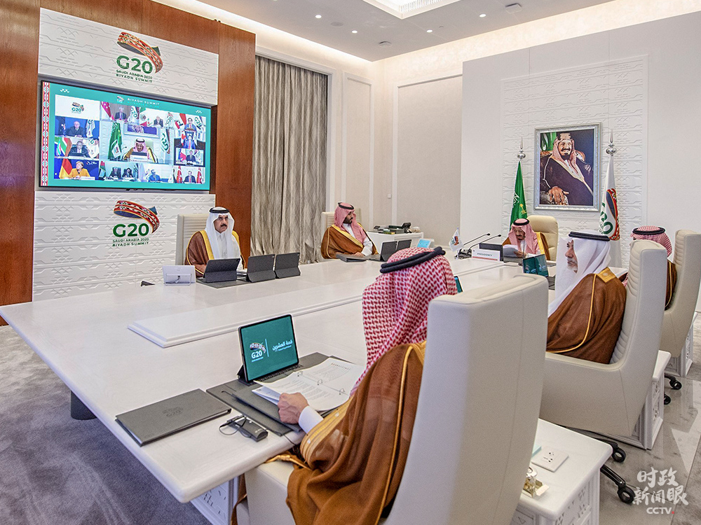 △沙特國王薩勒曼主持G20領導人第15次峰會第一階段會議。(來源于G20官方社交媒體)