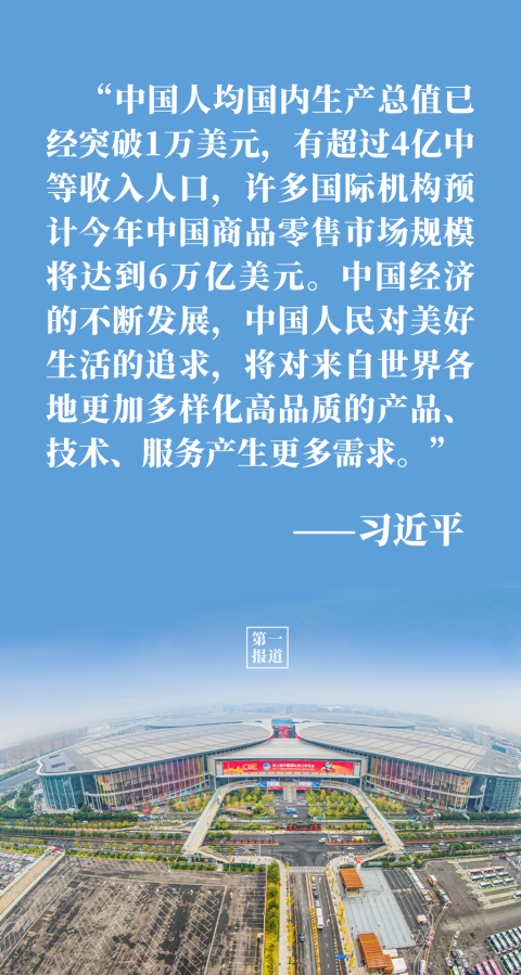 “中國的發(fā)展離不開世界,世界的繁榮也需要中國。”談到中國大市場蘊藏的大機遇,習(xí)主席用事實和數(shù)據(jù)說話: