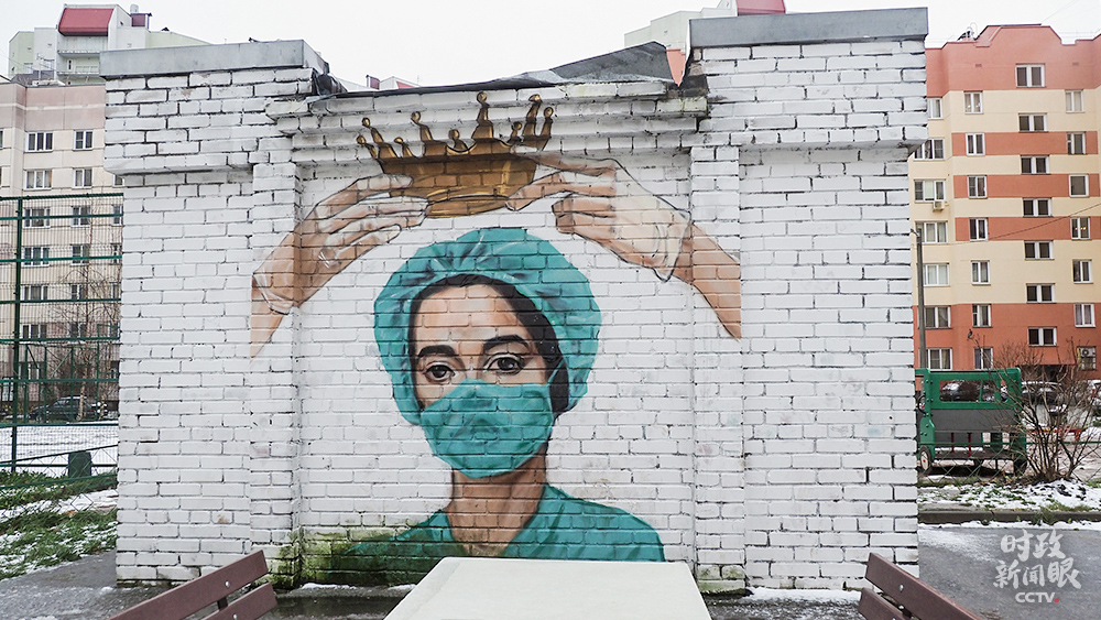 △這是俄羅斯圣彼得堡市民創(chuàng)作的涂鴉畫(huà),致敬抗擊新冠疫情的醫(yī)護(hù)工作者。