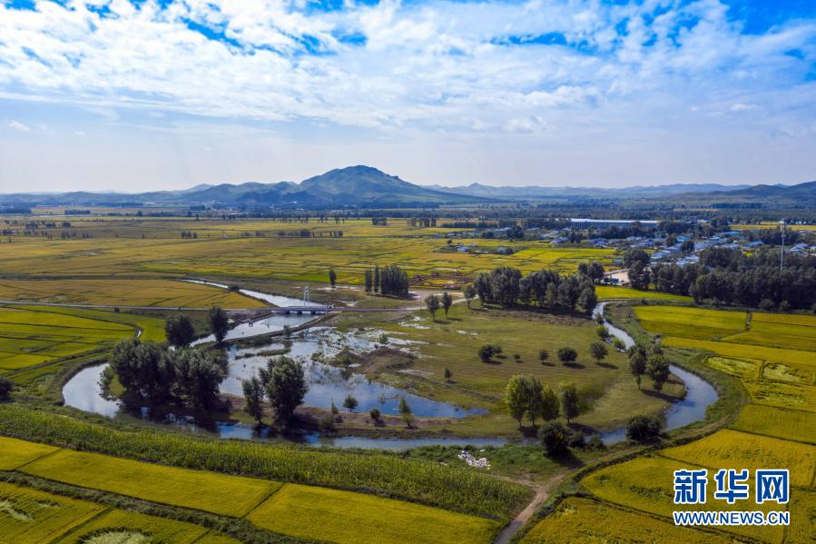內(nèi)蒙古烏蘭浩特市三合村的稻田(9月5日攝)?!⌒氯A社發(fā)(畢力格 攝)