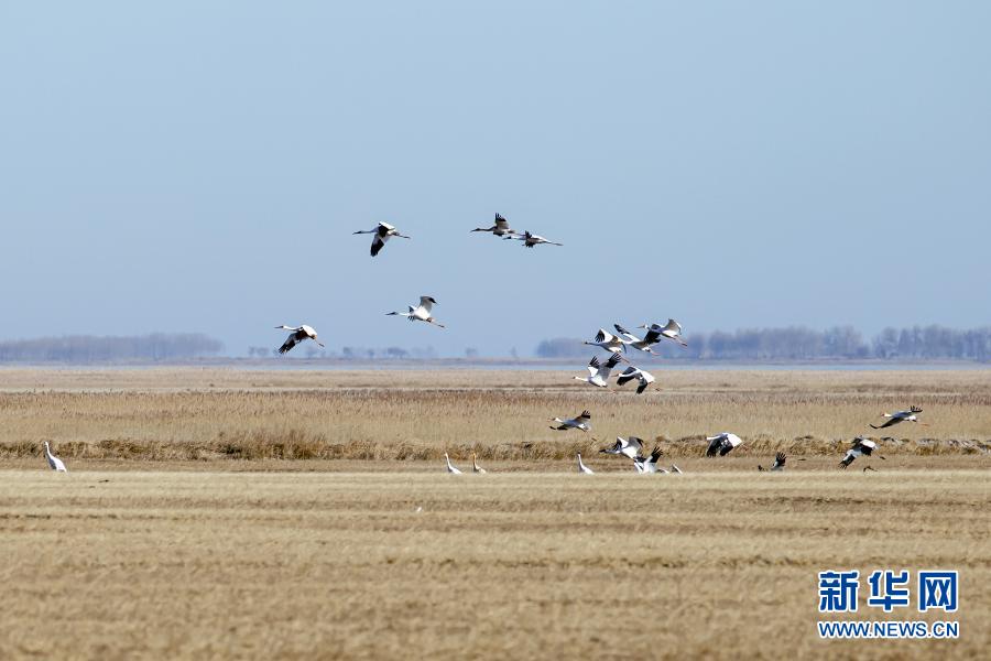 在內(nèi)蒙古扎賚特旗圖牧吉國家級(jí)自然保護(hù)區(qū)拍攝的白鶴(11月6日攝)。 新華社發(fā)(畢力格 攝)