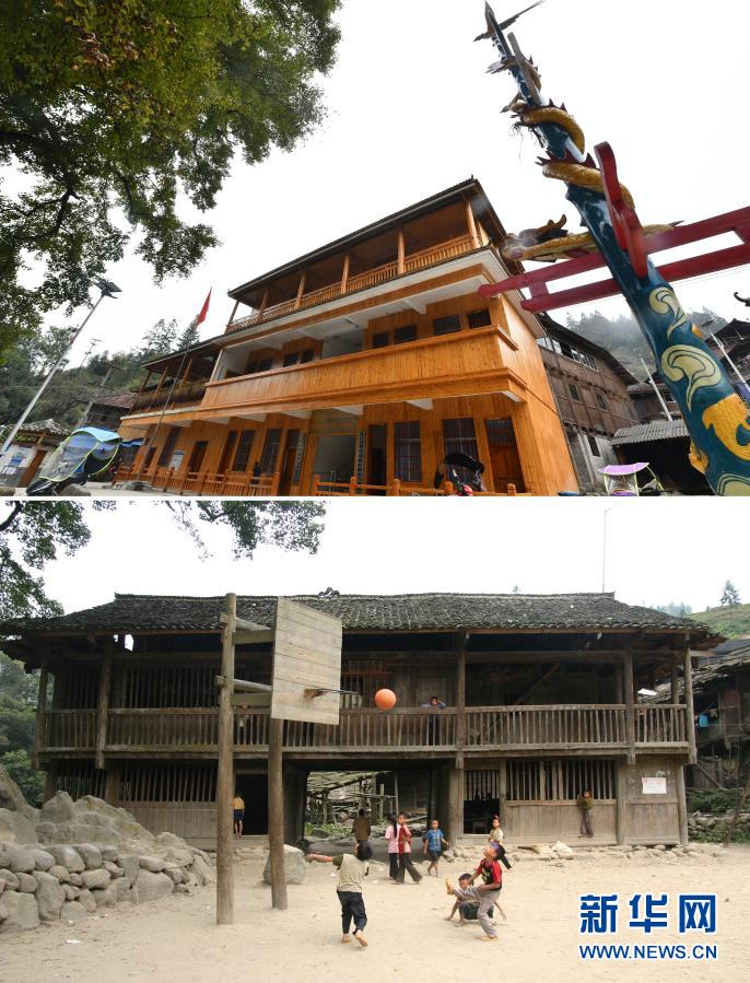 這是一張拼版照片,上圖為:2020年11月20日拍攝的完成改造的烏英教學(xué)點教學(xué)樓(新華社記者黃孝邦攝);下圖為:2006年9月19日拍攝的烏英教學(xué)點(龍濤攝)。新華社發(fā)