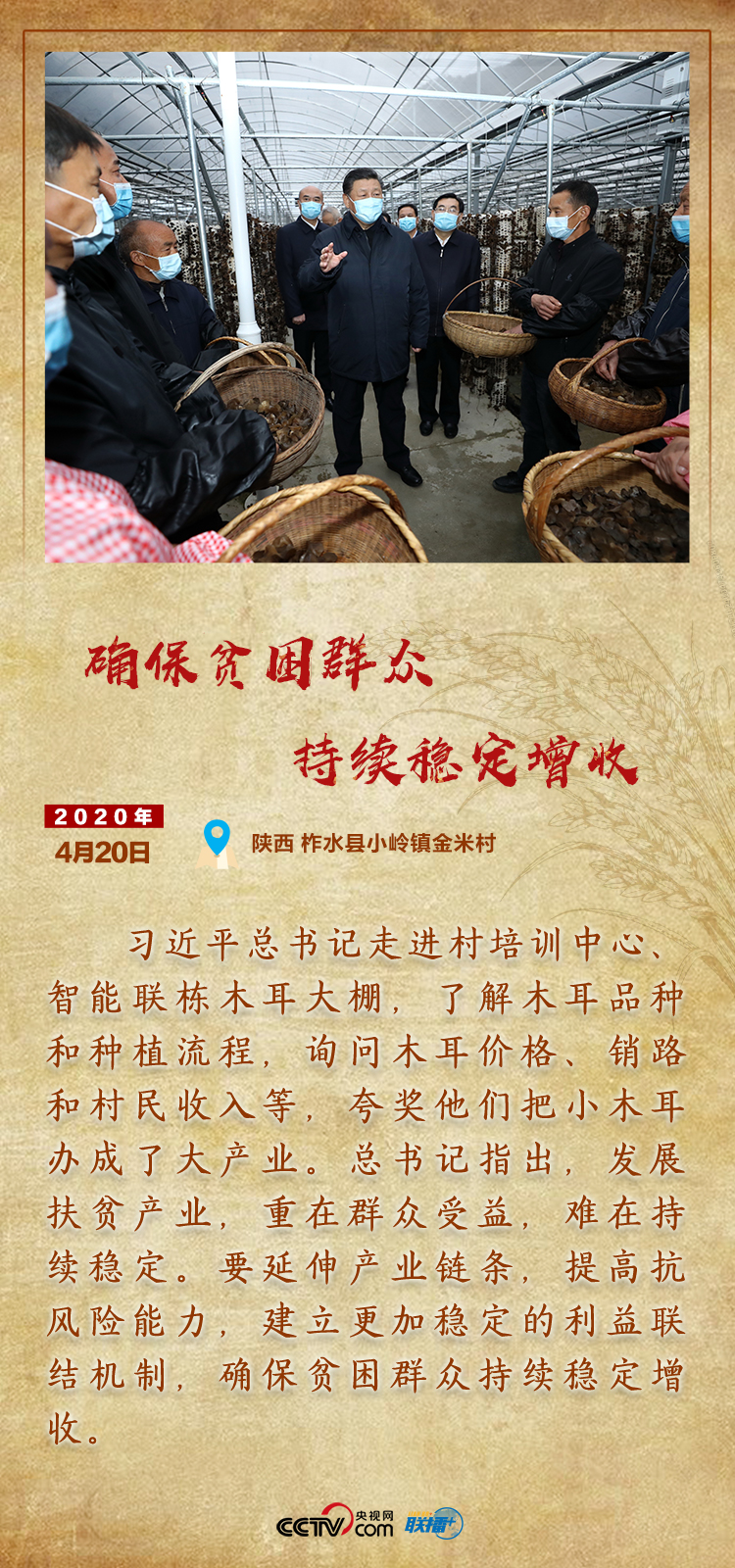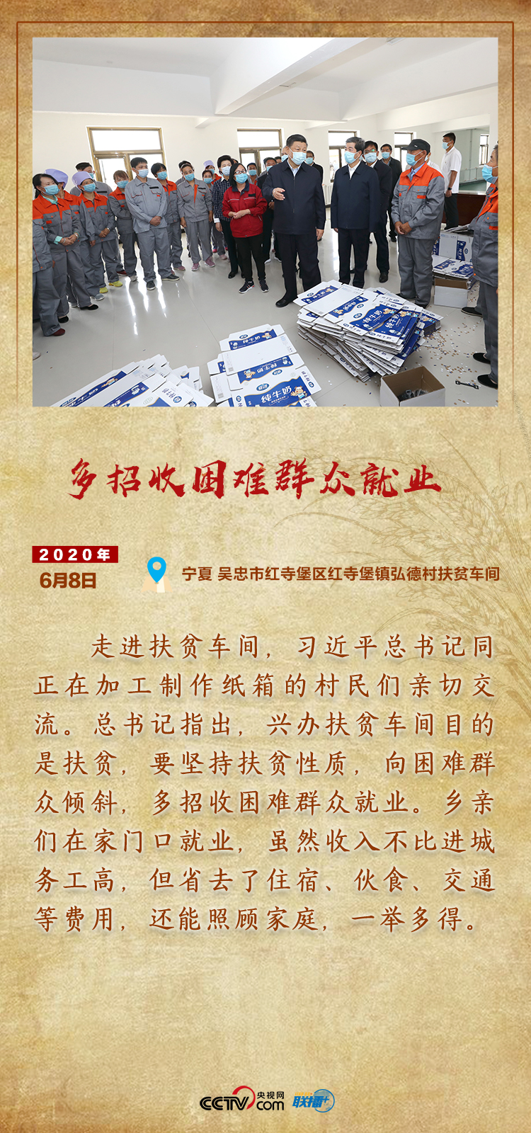 今年是全面建成小康社會(huì)目標(biāo)實(shí)現(xiàn)之年,也是全面打贏脫貧攻堅(jiān)戰(zhàn)收官之年。面臨新冠肺炎疫情,習(xí)近平總書(shū)記始終心系貧困群眾,用行動(dòng)踐行莊嚴(yán)承諾,田間地頭、扶貧車(chē)間、村民家中……處處留下總書(shū)記的扶貧足跡。