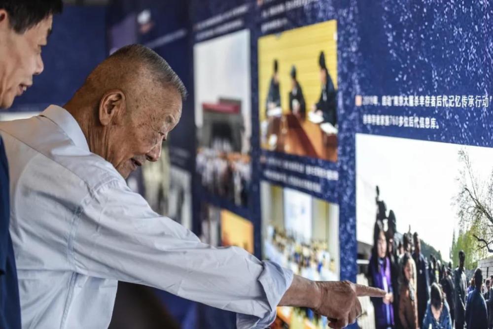 △2020年8月,南京大屠殺幸存者葛道榮參觀侵華日軍南京大屠殺遇難同胞紀念館35周年回顧展。