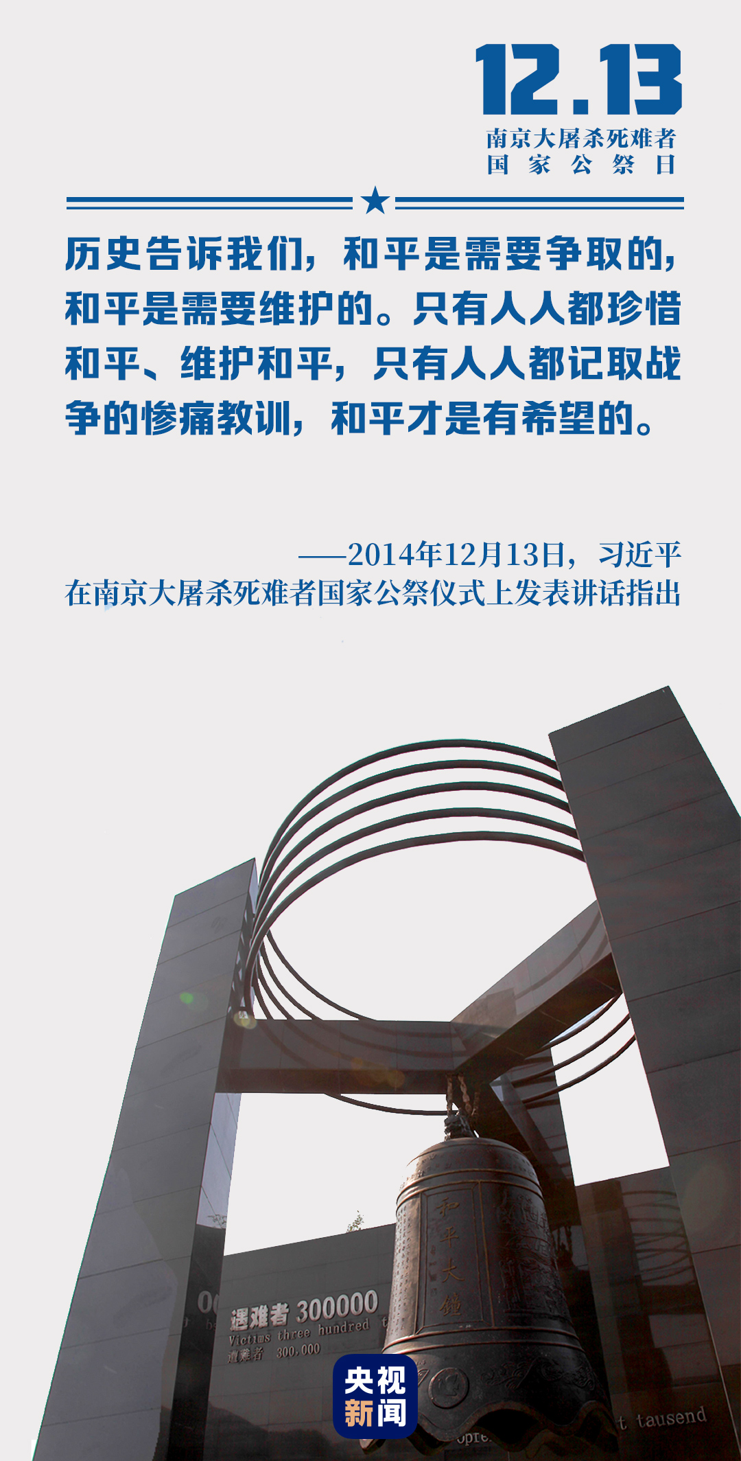 6年來,我們以國家之名祭奠死難者,以尊崇之心珍視和平,以民族之力矢志復興。