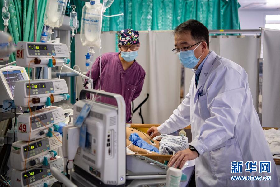 北京援藏醫(yī)生王小亭(右)在西藏自治區(qū)人民醫(yī)院病房為病人做重癥超聲評估(2月23日攝)。新華社記者 孫非 攝