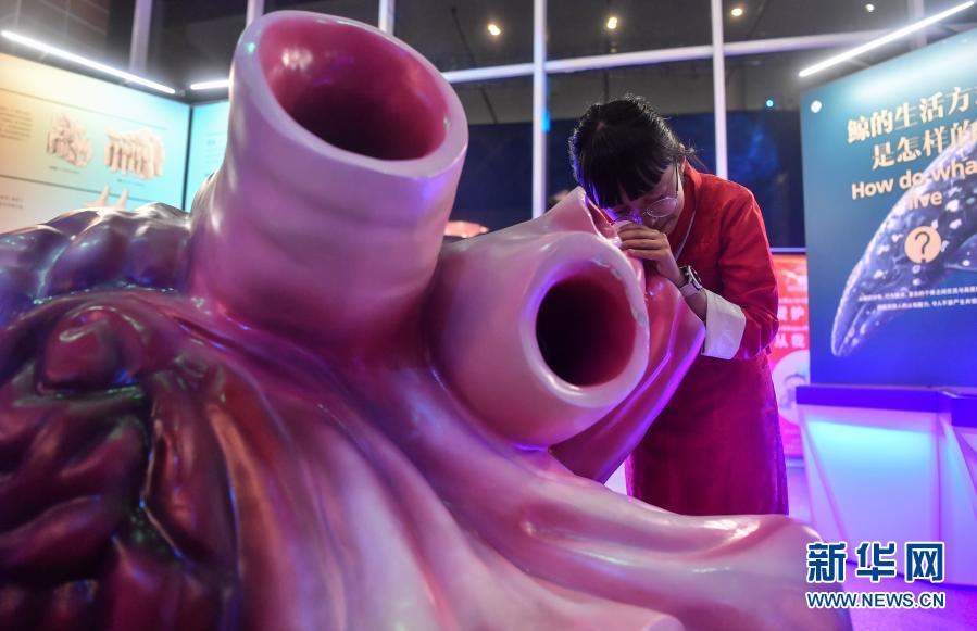 在西藏自治區(qū)自然科學(xué)博物館,一名拉薩市實驗小學(xué)的學(xué)生在《鯨奇世界》海洋主題巡展上觀看鯨魚心臟模型(10月30日攝)。來自上??萍拣^的海洋主題巡展《鯨奇世界》是2020年科技部“科普援藏”系列活動之一。新華社記者 晉美多吉 攝