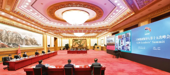 △2020年11月,習(xí)近平以視頻方式出席二十國集團(tuán)領(lǐng)導(dǎo)人第十五次峰會(huì)第二階段會(huì)議,重點(diǎn)闡述關(guān)于可持續(xù)發(fā)展問題的看法。