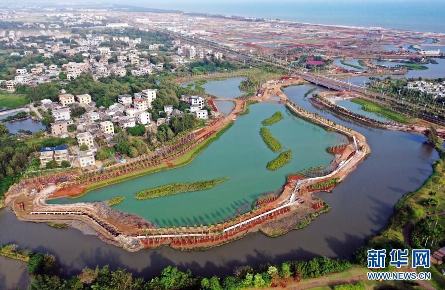 這是??谑薪瓥|新區(qū)芙蓉河綜合治理工程(11月6日攝,無人機(jī)照片)。新華社記者 郭程 攝