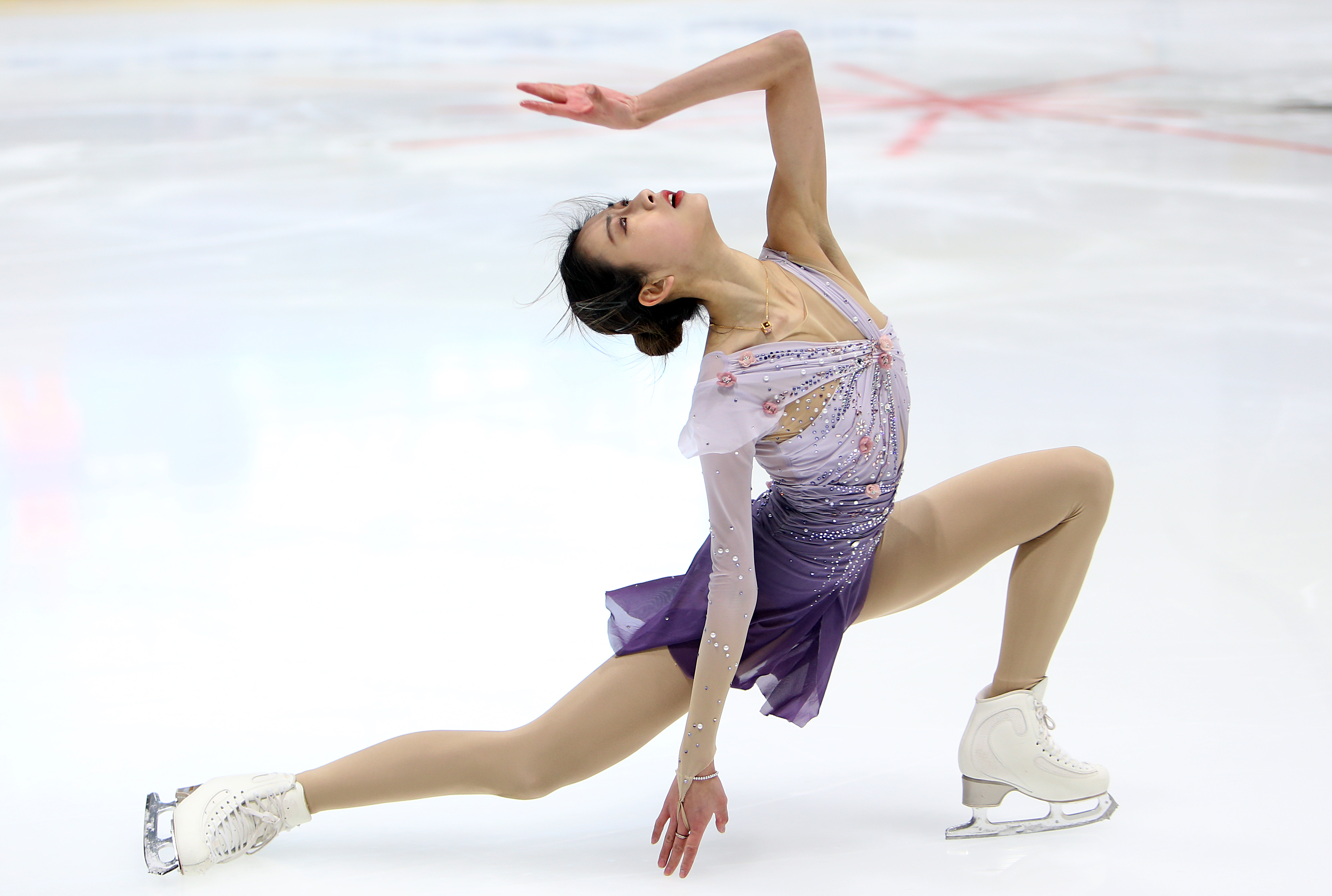 2021年1月1日,花樣滑冰——國家集訓隊團隊對抗賽在京舉行,圖為“精英隊”選手陳虹伊在女子單人滑短節(jié)目比賽中。新華社記者 雒圓 攝