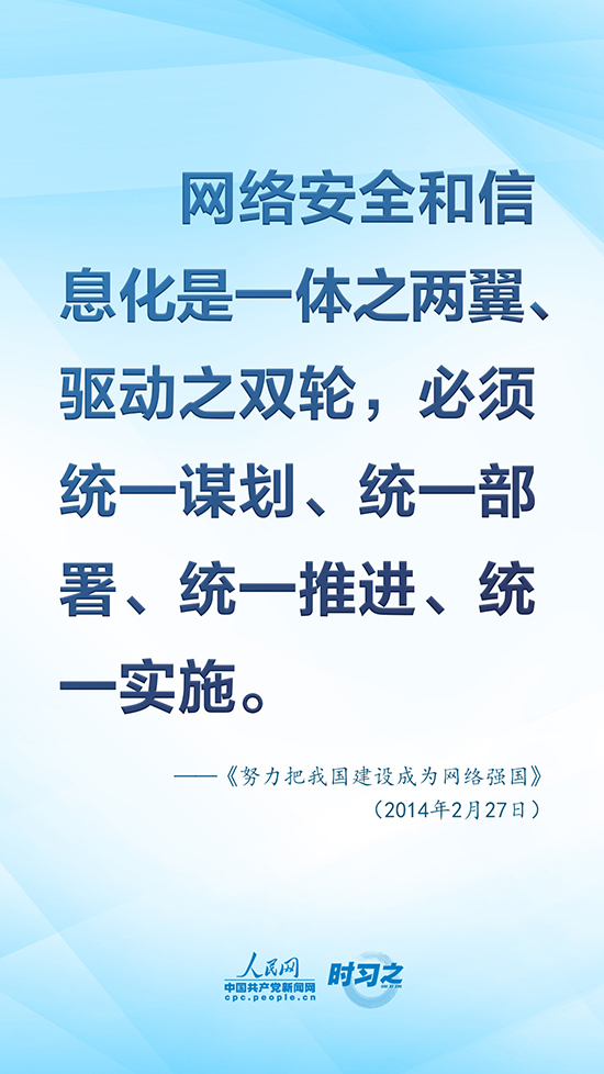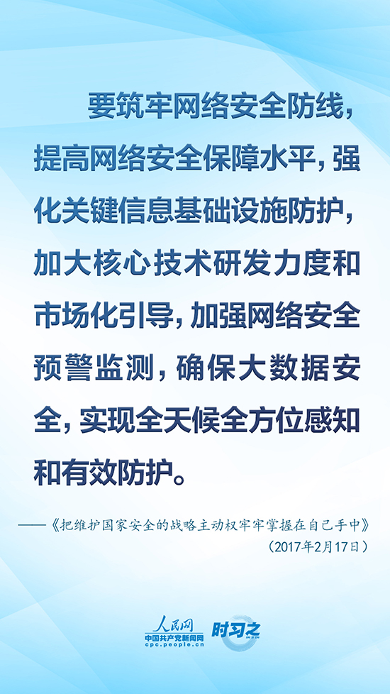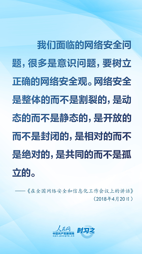 黨的十八大以來,以習近平同志為核心的黨中央從進行具有許多新的歷史特點的偉大斗爭出發(fā),重視互聯(lián)網(wǎng)、發(fā)展互聯(lián)網(wǎng)、治理互聯(lián)網(wǎng),統(tǒng)籌協(xié)調(diào)涉及政治、經(jīng)濟、文化、社會、軍事等領(lǐng)域網(wǎng)絡(luò)安全和信息化重大問題,作出一系列重大決策、實施一系列重大舉措,推動我國網(wǎng)信事業(yè)取得歷史性成就,走出一條中國特色治網(wǎng)之道。人民網(wǎng)·中國共產(chǎn)黨新聞網(wǎng)“時習之”欄目擷取了《習近平關(guān)于網(wǎng)絡(luò)強國論述摘編》中有關(guān)“維護國家網(wǎng)絡(luò)安全”的10句金句,以饗讀者。