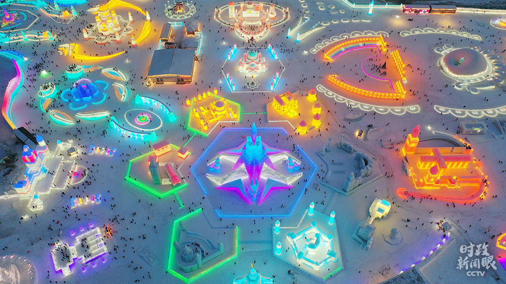 △哈爾濱冰雪大世界打造了中東歐17國(guó)主題城堡園區(qū),夜景璀璨,如夢(mèng)似幻。