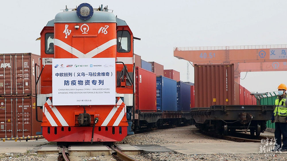 △1月25日,滿載著100個(gè)標(biāo)箱的防疫物資及生產(chǎn)生活物資的“義新歐”中歐班列(義烏-馬拉舍維奇)防疫物資專列從浙江義烏西站啟程,將于13天后抵達(dá)波蘭馬拉舍維奇。這是2021年中國(guó)首趟中歐班列防疫物資專列。