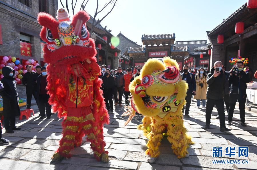 2月16日,游客在山西省忻州古城觀看舞獅表演。新華社記者 馬毅敏 攝