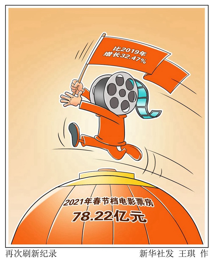 國(guó)家電影局?jǐn)?shù)據(jù)顯示,除夕至正月初六,全國(guó)電影票房達(dá)78.22億元,再次刷新春節(jié)檔票房紀(jì)錄;支付寶數(shù)據(jù)顯示,春節(jié)日均觀影買票人數(shù)增加超560%。