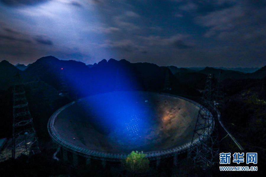 2020年1月8日,夜色中的“中國(guó)天眼”全景(檢修期間拍攝)。新華社記者歐東衢 攝