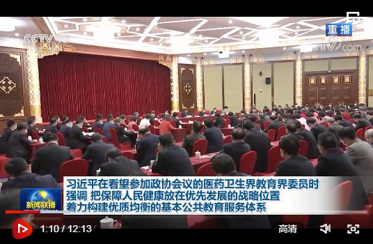 中共中央總書記、國家主席、中央軍委主席習近平3月6日下午看望了參加全國政協(xié)十三屆四次會議的醫(yī)藥衛(wèi)生界、教育界委員,并參加聯(lián)組會,聽取意見和建議。他強調(diào),要把保障人民健康放在優(yōu)先發(fā)展的戰(zhàn)略位置,堅持基本醫(yī)療衛(wèi)生事業(yè)的公益性,聚焦影響人民健康的重大疾病和主要問題,加快實施健康中國行動,織牢國家公共衛(wèi)生防護網(wǎng),推動公立醫(yī)院高質(zhì)量發(fā)展,為人民提供全方位全周期健康服務。要全面貫徹黨的教育方針,堅持社會主義辦學方向,堅持教育公益性原則,著力構(gòu)建優(yōu)質(zhì)均衡的基本公共教育服務體系,建設高質(zhì)量教育體系,辦好人民滿意的教育,培養(yǎng)德智體美勞全面發(fā)展的社會主義建設者和接班人。