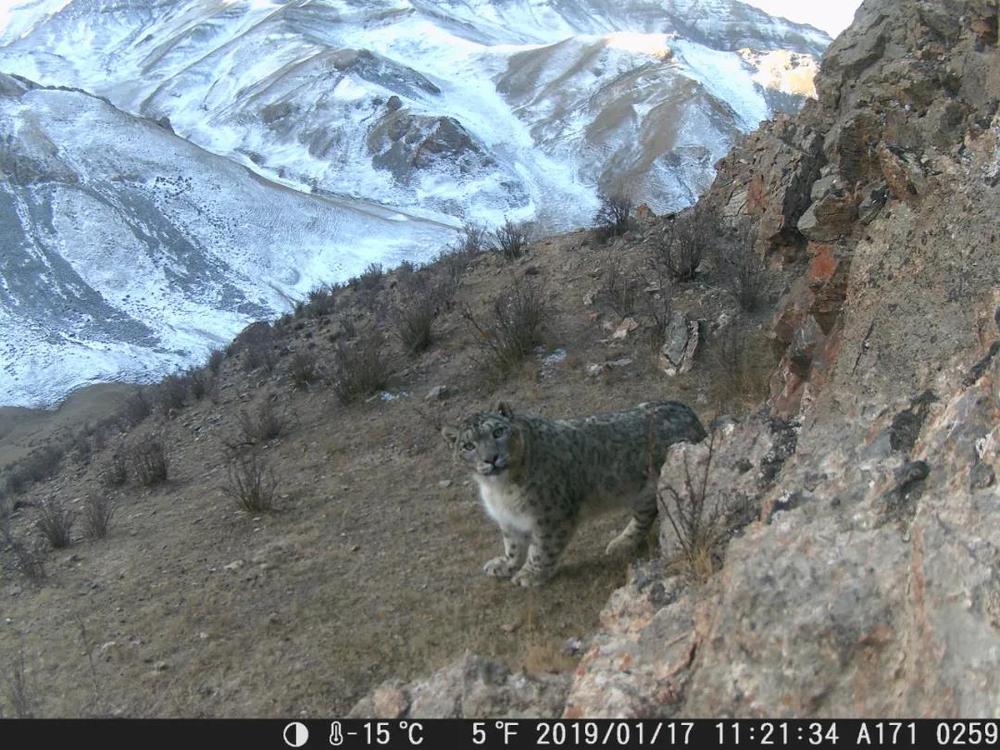 ↑2019年2月20日,在祁連山國(guó)家公園青海片區(qū),紅外相機(jī)拍攝到的雪豹照片。