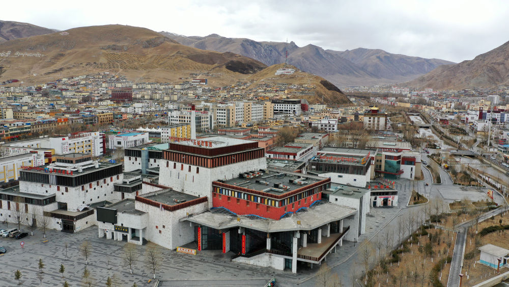 ↑ 圖為2021年3月10日拍攝的玉樹康巴藝術中心(玉樹地震前的結古鎮(zhèn)民族賓館)