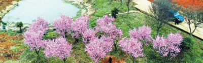 安徽馬鞍山市博望區(qū)丹陽(yáng)鎮(zhèn)百峰村美人梅盛開(kāi)。 陳亞?wèn)|攝(人民視覺(jué))