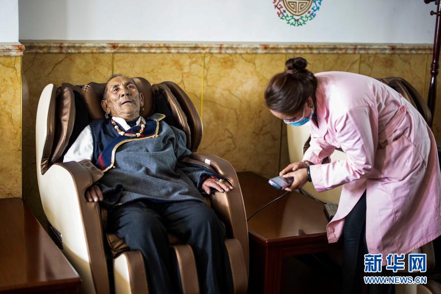 次旦在集中供養(yǎng)服務中心接受按摩服務(3月19日攝)。