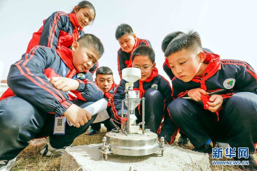 3月22日,河北省柏鄉(xiāng)縣南關(guān)小學(xué)的學(xué)生在學(xué)習(xí)氣象知識。新華社發(fā)(李雪其 攝)