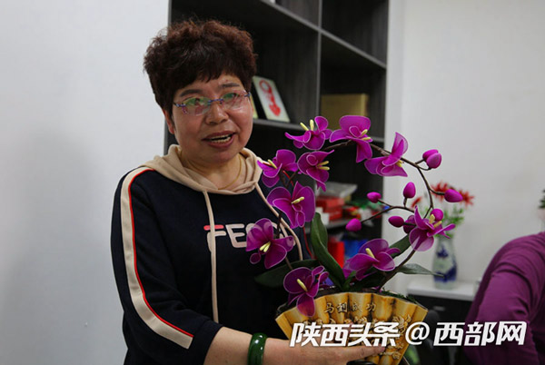 董智玲說:“你看我這盆蝴蝶蘭絲網(wǎng)花是不是很逼真,絲網(wǎng)花質(zhì)感強(qiáng),猶如鮮花一般,放在家里欣賞及裝飾效果都很好,它不易褪色,歷久如新,清潔起來也相當(dāng)方便。”