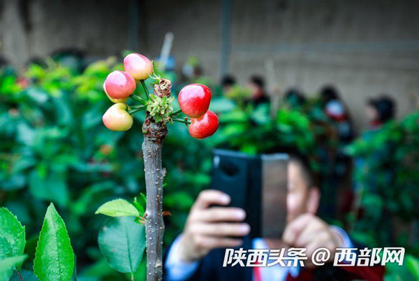 在櫻桃棚內(nèi),紅色的櫻桃一簇一簇簇?fù)碓跇?shù)上,在綠油油的樹(shù)葉間顯得嬌艷欲滴。路寶告訴記者,子長(zhǎng)的櫻桃可以趕在其他產(chǎn)地的櫻桃未上市前售賣(mài),因此市場(chǎng)行情好,加上保存期長(zhǎng),適合現(xiàn)代物流的發(fā)展,從而產(chǎn)生了比較好的收益。“我們這個(gè)櫻桃可以在其他櫻桃還沒(méi)有上市的時(shí)候,借助現(xiàn)代物流賣(mài)到全國(guó)各地,甚至可以賣(mài)到櫻桃的主產(chǎn)區(qū)去。”