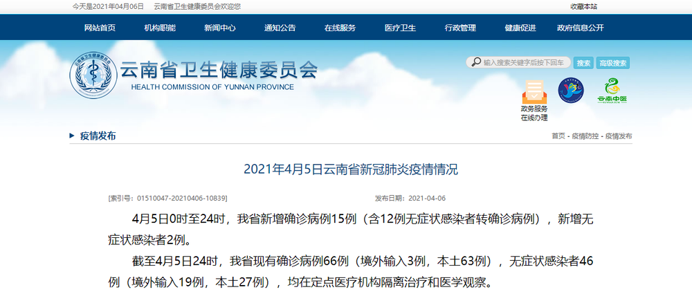 2021年4月5日云南省新冠肺炎疫情情況