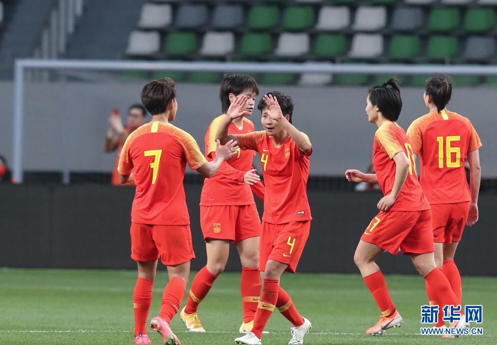 4月13日,中國(guó)隊(duì)球員王霜在比賽中慶祝進(jìn)球。新華社記者楊磊攝