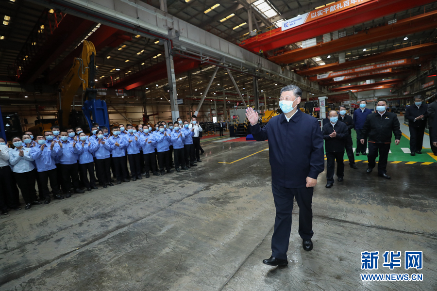 4月25日至27日,中共中央總書記、國家主席、中央軍委主席習(xí)近平在廣西考察。這是26日下午,習(xí)近平在廣西柳工集團有限公司挖掘機裝配廠考察調(diào)研。 新華社記者 鞠鵬 攝