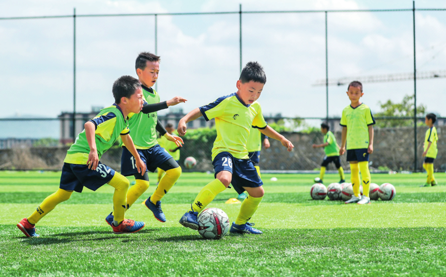 大連龍卷風(fēng)俱樂部U8年齡組的小球員在進行訓(xùn)練(2020年5月19日攝) 潘昱龍攝/本刊