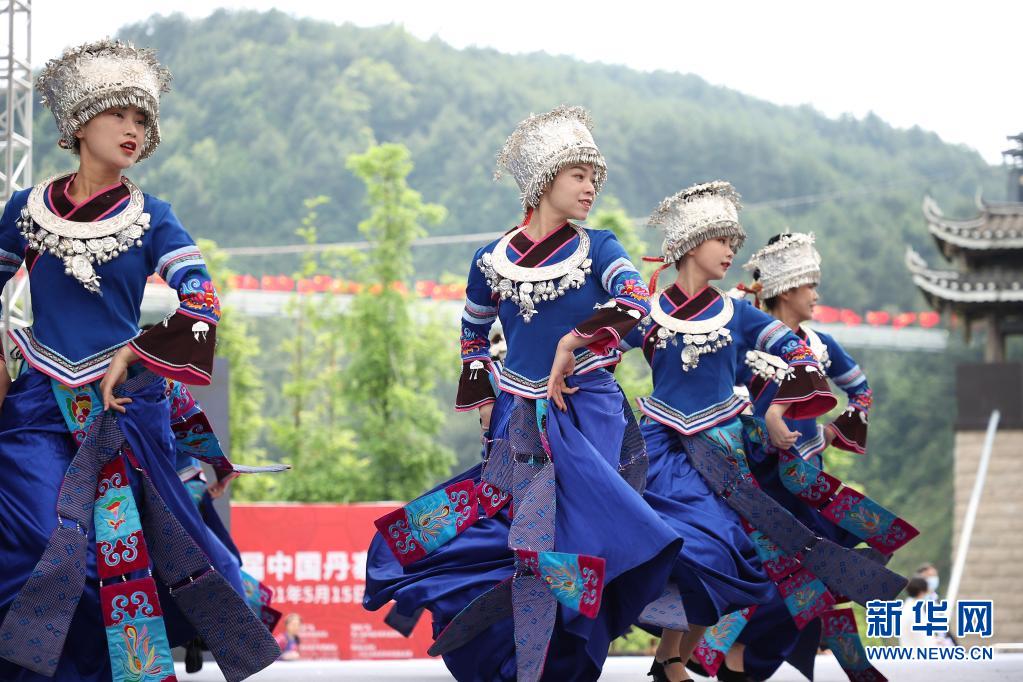 5月16日,演員在丹寨縣萬達(dá)小鎮(zhèn)非遺歌舞展演活動(dòng)上表演苗族木鼓舞。新華社發(fā)(黃曉海 攝)