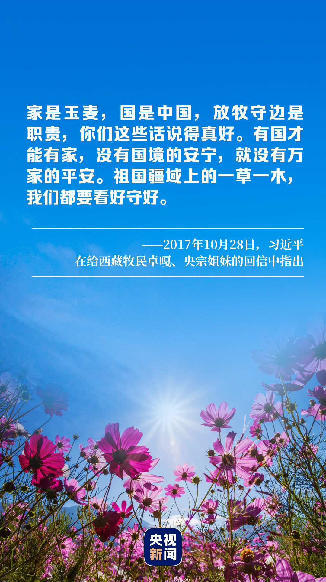 2017年10月,習(xí)近平給卓嘎、央宗姐妹回信,稱(chēng)贊兩姐妹“家是玉麥,國(guó)是中國(guó)”的境界,強(qiáng)調(diào)“有國(guó)才能有家,沒(méi)有國(guó)境的安寧,就沒(méi)有萬(wàn)家的平安”。