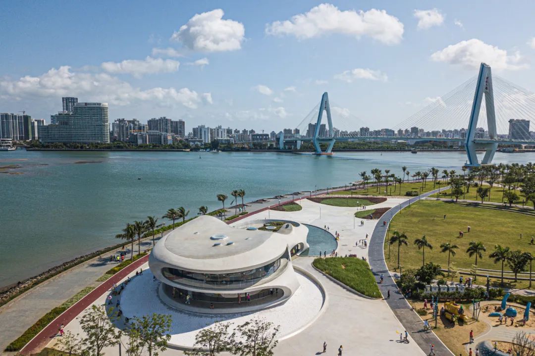 ▲“十四五”開局之年,也是海南全面深化改革開放和加快建設(shè)自由貿(mào)易港關(guān)鍵之年。這是5月3日在??谂臄z的云洞圖書館,遠(yuǎn)處是??诘貥?biāo)世紀(jì)大橋(無人機(jī)照片)。新華社記者 蒲曉旭 攝