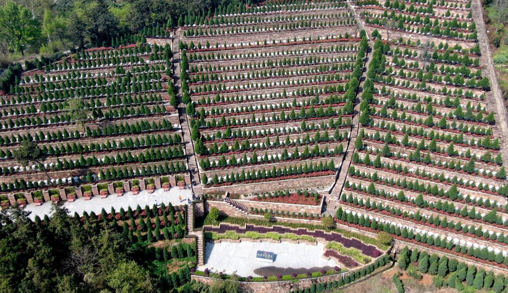 這是2021年4月4日拍攝的鄂豫皖蘇區(qū)首府烈士陵園(無(wú)人機(jī)照片)。新華社記者郝源攝